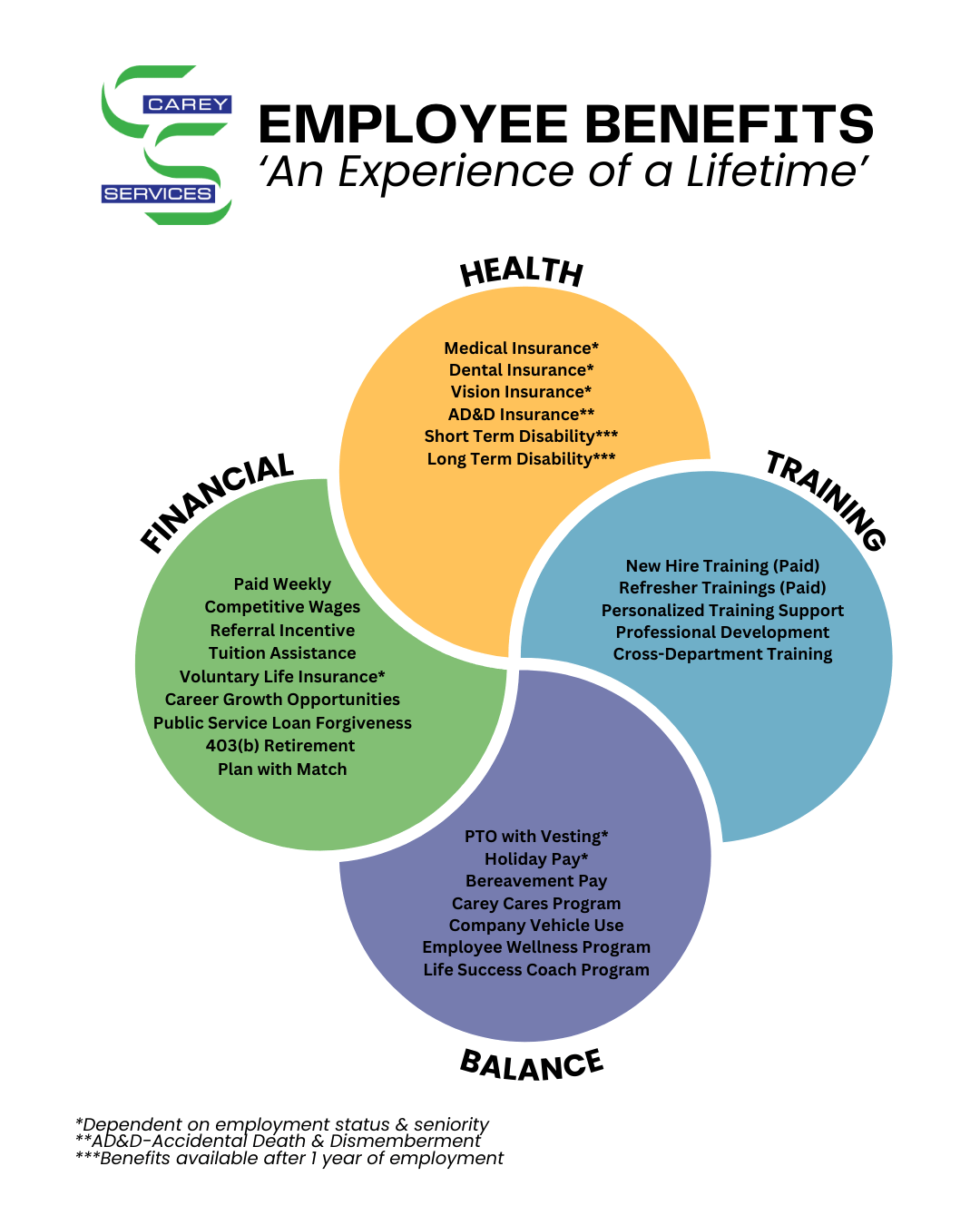 Thank you for exploring career opportunities with Carey Services. Every role here contributes to our mission of turning abilities into opportunities, and we’re excited you’re considering being part of that impact.